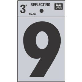 Address Number "9", Reflective Black Vinyl, 3-In.