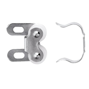 Nickel plated steel double roller catch. 11/16 In. W. x 1 In. L. Projection: 3/8 In. Pull force: 6 Lb.