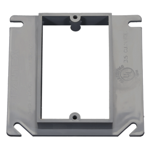 CANTEX EZ03SXA EZ BOX 1-gang cover provides a 1/2 in. rise or extension for any CANTEX 4 inch square EZ BOX, 4 inch square ENT box or 2-gang ENT boxes. These risers easily reduce CANTEX 4 inch square or 2-gang ENT boes to single-gang useage. The riser has 4 notches for easy installation of screws to secure the riser.Features:4 strategically placed notches for screws make installation easyCreates a 1/2 in. rise with easeEngineered for easy, cost saving installation and constructed with resilient PVC for durabilityUL Listed, UL 2 Hour Fire RatedMade in USA