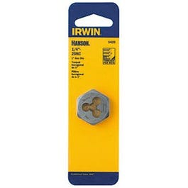 5/16" x 18, national coarse thread, 1" hexagon fractional die, carbon steel, ideal for routine maintenance, repair work & for rethreading where high accuracy & tolerance thread is not critical, recommended for use with hexagon die stock, die can be used with a wrench or socket when space is limited, designed for hand threading work in a variety of materials.