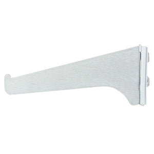 Reinforced brackets lock into slotted standards for strong, secure, weight-bearing support. Features a shelf retaining lip and a spring clip for stability and friction lock. Brackets are vertically adjustable in 1 In increments. Regular-duty, single slot design. 320 Lb. per pair load capacity. For use with 80 Series standards (sold separately). Available in anochrome (ANO), brass (BR), painted black (BLK), painted white (WH), and titanium (TI) finish. 4 In. to 12 In. brackets are 16-gauge steel construction - 14 In. to 20 In. brackets are 14-gauge steel construction. 5/8 In. W.