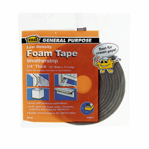 M-D 1/2" W x 1/4" T x 17' L Gray Foam Open Cell Weatherstrip Tape